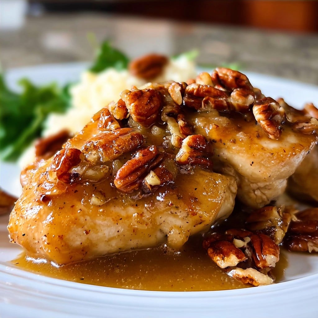 I make this when I want my family to actually ask for leftovers, which rarely happens unless I bring out some outrageous sauce like this. My son claims he’s “not really a poultry guy,” but he demolishes it. Maybe the pecans distract him, who knows. This recipe’s good for nights when you want something more than standard grilled chicken. Actually, I almost gave up on sticky glazes after a maple syrup disaster (it’s a long tale—the cat was involved) but this one convinced me to try again. And hey, if you like a bit of Southern charm with your dinner, you’re in the right place.
