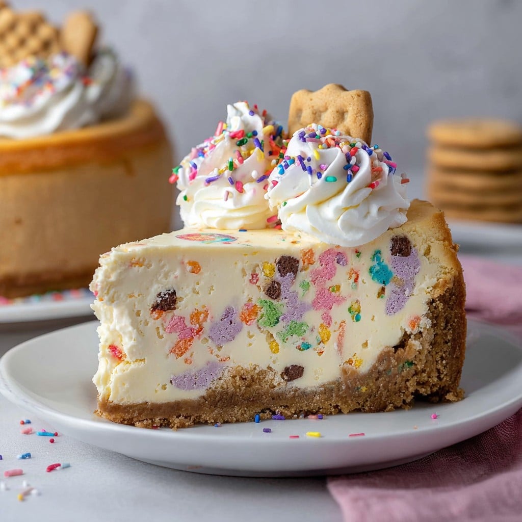 6Bake for 40 minutes, or until the center is just set. Turn off the oven and let cheesecake cool inside for 1 hour. Refrigerate at least 4 hours or overnight. Garnish with additional sprinkles before serving.